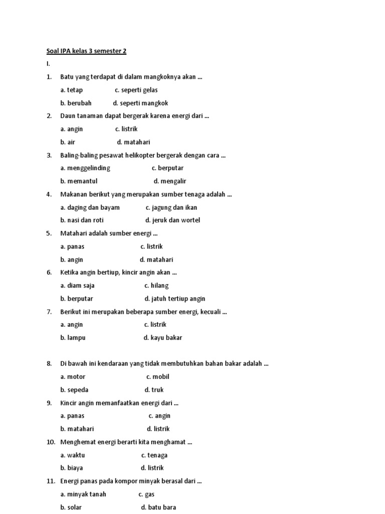 Soal ipa kelas 3 semester 1. Check spelling or type a new query. Maybe you would like to learn more about one of these? We did not find results for: